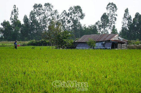 | Cái Sắn vẫn giữ được màu xanh ruộng lúa, vườn cây bên cạnh con tôm. Ảnh: Nhật Minh |