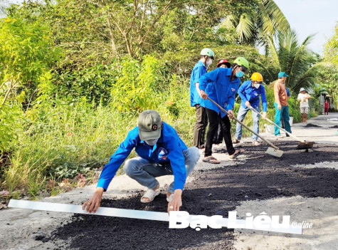 Đoàn viên - thanh niên dặm vá lộ nông thôn bị xuống cấp. Ảnh: H.L