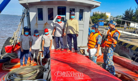 | Tàu vi phạm buôn bán dầu trái phép được lai dắt về Hải đội 421 tại huyện Năm Căn để xử lý. |