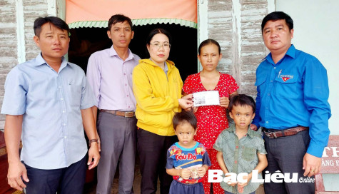 Đại diện các ban, ngành, đoàn thể huyện Hòa Bình đến thăm hỏi, hỗ trợ gia đình em T.A.M.