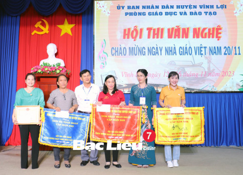 Hội thi thu hút sự tham gia của gần 700 học sinh, trẻ mầm non đến từ 27 trường mẫu giáo, mầm non, tiểu học, THCS của huyện Vĩnh Lợi. Các đơn vị dự thi theo cấp học với nhiều thể loại như: đơn ca, song ca, tốp ca, múa… (ảnh 1 và 2).