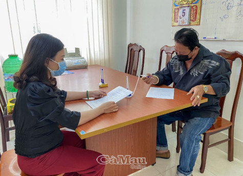 | Chuyên viên Trung tâm Dịch vụ Ðấu giá tài sản, Sở Tư pháp tỉnh Cà Mau hướng dẫn khách hàng mua hồ sơ tham gia đấu giá tài sản. |