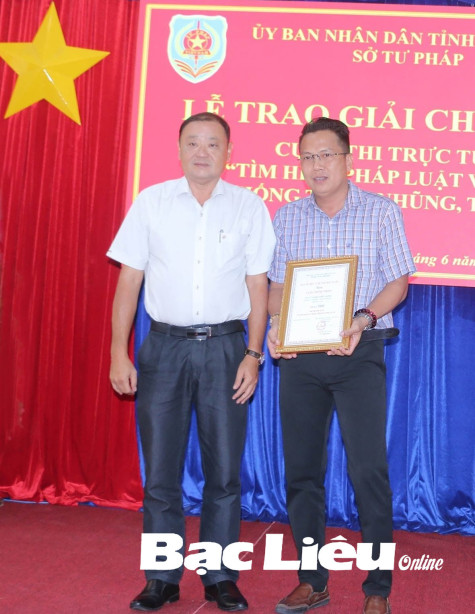 Trao giải cuộc thi trực tuyến “Tìm hiểu pháp luật về phòng, chống tham nhũng, tiêu cực” do Sở Tư pháp tổ chức. Ảnh: K.P