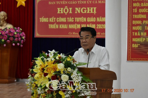 (CMO) Năm 2019, ngành Tuyên giáo của tỉnh có nhiều đổi mới về nội dung, phương pháp hoạt động. Chủ động trong công tác tuyên truyền, định hướng xã hội trước các vấn đề thời sự được dư luận quan tâm. Đồng thời, Ban Tuyên giáo các cấp tham mưu kịp thời cho cấp ủy xây dựng, sơ kết, tổng kết các chương trình, kế hoạch công tác...Đó là những nội dung cơ bản được đánh giá tại Hội nghị tổng kết công tác tuyên giáo diễn ra vào sáng 17/1.