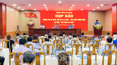 Chiều 5/11, Ban Tổ chức Ngày hội Cua Cà Mau lần thứ II năm 2025 tổ chức họp báo thông tin về các hoạt động của Ngày hội. Các đồng chí Lê Văn Sử và Ngô Vũ Thăng, Phó Chủ tịch UBND tỉnh; cùng đồng chí Nguyễn Nam Phong, Phó Trưởng Ban Tuyên giáo và Dân vận Tỉnh uỷ, chủ trì buổi họp báo.