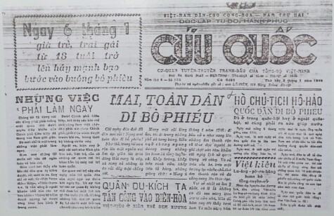 Là cơ quan ngôn luận của Tổng bộ Việt Minh, Cứu quốc là tờ báo có tầm ảnh hưởng rộng lớn nhất thời bấy giờ. Đây là tờ báo đăng tải sớm nhất và đầy đủ các sắc lệnh quan trọng của Chính phủ về tổ chức và thể lệ Tổng tuyển cử.