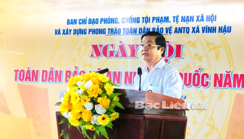 Phát biểu tại ngày hội, đồng chí Huỳnh Chí Nguyện - Phó Chủ tịch UBND tỉnh ghi nhận và chúc mừng, biểu dương những kết quả, thành tích mà cán bộ, Nhân dân xã Vĩnh Hậu đã đạt được trong các năm qua. Đồng thời đề nghị cấp ủy, chính quyền, MTTQ, các tổ chức chính trị - xã hội từ tỉnh đến cơ sở và Nhân dân trong toàn tỉnh tiếp tục nâng cao nhận thức phong trào TDBVANTQ là một nhiệm vụ rất quan trọng; quán triệt, thực hiện nghiêm, có hiệu quả các chủ trương của Đảng, chính sách, pháp luật của Nhà nước, quy định, hướng dẫn của Bộ Công an và của tỉnh về công tác đảm bảo an ninh, trật tự và xây dựng phong trào TDBVANTQ. Tập trung đổi mới nội dung, hình thức, biện pháp tuyên truyền; nâng cao chất lượng, hiệu quả phong trào TDBVANTQ gắn với các phong trào, các cuộc vận động khác ở địa phương; củng cố vững chắc thế trận an ninh nhân dân và thế trận quốc phòng toàn dân; quan tâm chăm lo đời sống vật chất, tinh thần cho Nhân dân gắn với công tác dân vận theo phương châm “Trọng dân, gần dân, hiểu dân, học dân, dựa vào dân và có trách nhiệm với dân”.