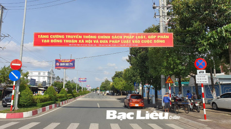 Sở Tư pháp tuyên truyền Ngày Pháp luật bằng phương pháp trực quan trên các tuyến đường phố trung tâm TP. Bạc Liêu. Ảnh: K.P