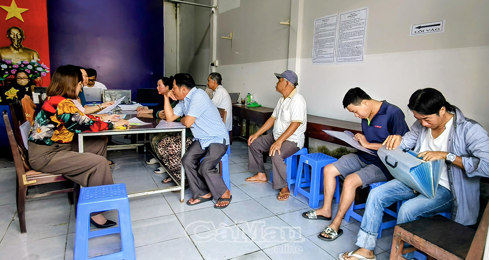 Người dân chờ làm thủ tục hành chính tại trụ sở Khóm 7, phường Vĩnh Trạch