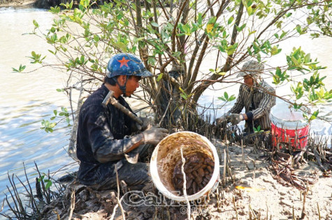 Đều đặn mỗi ngày, tờ mờ sáng vợ chồng anh Tư Ngọc chuẩn bị vội bữa sáng bằng mì gói hay cơm chiên tỏi, rồi sách vở, quần áo cho 3 đứa con gái đi học. Xong xuôi cũng là lúc nước bắt đầu rút dần, để lộ ra bãi bồi phù sa ven theo những hàng mắm, đước. Anh chị chuẩn bị dụng cụ xô, vá, xẻng, đèo nhau trên chiếc xe chỉ còn trơ lại bộ “xương sườn”, qua chuyến phà ngã năm mới đến điểm “săn” chem chép. Đến nơi, anh Ngọc nói: “Khi thấy hang chem chép mình dùng xẻng đào từ từ xuống. Khi nào thấy con chem chép nhô lên thì dùng tay bắt, nếu không khéo, đào mạnh làm bể vỏ chem chép sẽ bán không được”.
