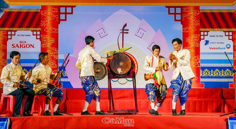 | Nghệ nhân ấp Cây Khô, xã Hồ Thị Kỷ, huyện Thới Bình biểu diễn dàn nhạc Trống Lớn tại Liên hoan “Tiếng hát 3 dân tộc” được tổ chức tại huyện Trần Văn Thời. |