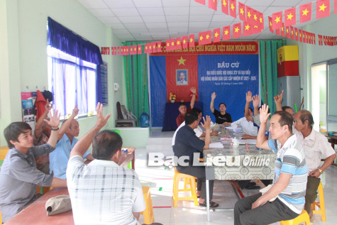 Thành viên HTX Nông nghiệp 8-3 (xã Vĩnh Hưng A, huyện Vĩnh Lợi) biểu quyết thống nhất mức đóng góp vốn điều lệ.