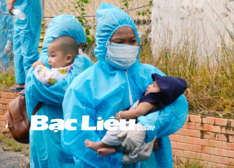 Phụ nữ nuôi con nhỏ là đối tượng ưu tiên được Bạc Liêu đón về trong chuyến đầu tiên từ vùng dịch TP. Hồ Chí Minh. Ảnh: C.K