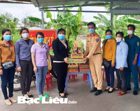Hội LHPN TX. Giá Rai thăm hỏi và tặng quà cho các chốt kiểm dịch trên địa bàn thị xã. Ảnh: T.Q