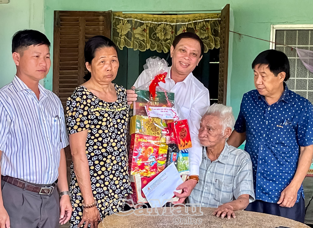 Ông Nguyễn Xuân Tình, Phó Chủ tịch Thường trực Hội Nạn nhân chất độc da cam/Dioxin tỉnh, trao quà Tết cho bà Nguyễn Tuyết Thu (Ấp 15, xã Khánh An).