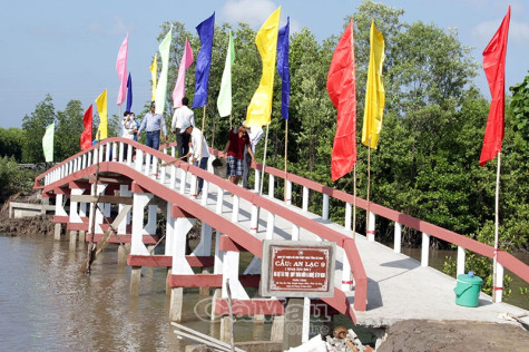 | Cầu An Lạc 9, ấp Tân Lập, xã Tân Ân Tây được xây dựng chào mừng Đại hội Đảng bộ huyện Ngọc Hiển. |