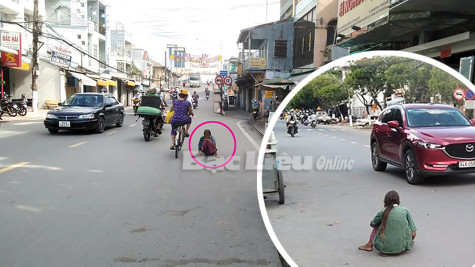 Nhiều người qua lại cầu Kim Sơn (đường Cao Văn Lầu, Phường 5, TP. Bạc Liêu) không khỏi lo sợ thay cho một phụ nữ thường xuyên ngồi dưới lòng đường, mặc cho xe cộ xuôi ngược xung quanh mình. Đây là khu vực dốc cầu có phương tiện lưu thông đông đúc, ngoài ra còn có đường nhánh men theo dốc cầu vào hướng UBND Phường 5 nên giao thông khá phức tạp. Tại khu vực này từng xảy ra một vụ tai nạn giao thông đặc biệt nghiêm trọng.