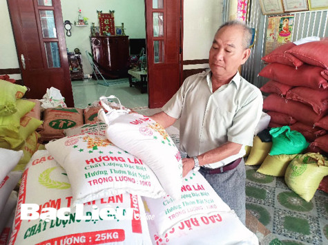 Ông Trương Quốc Hưng chuẩn bị gạo tặng người nghèo. Ảnh: T.Q