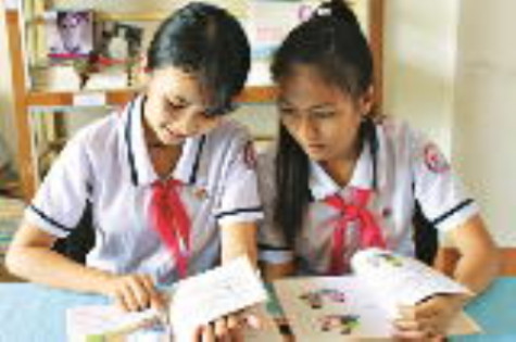 Học sinh trường PTDT Nội trú THCS Danh Thị Tươi đọc sách trong thư viện. |
