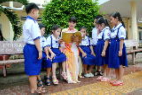 Giờ học ngoại khoá của cô và trò Trường Tiểu học 1 thị trấn Năm Căn. |