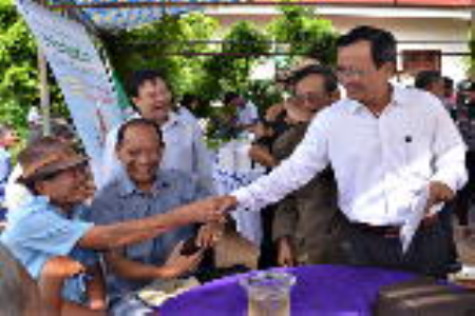 | Đại tá Khưu Ngọc Bảy, nguyên Trung đoàn trưởng Trung đoàn 962 ôn lại kỷ niệm về Trường Thiếu sinh quân 673 với bà con vùng ngọn Cái Bẹ. |