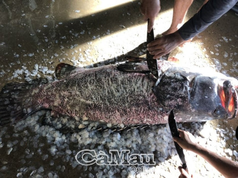 (CMO) Khoảng 4 giờ sáng ngày 23/4, ông Nguyễn Minh Tùng, khóm 8, thị trấn Rạch Gốc, huyện Ngọc Hiển trong quá trình thả lưới đáy hàng khơi đã bắt được con cá mú biển nặng 52 kg.