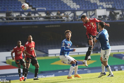 Tuy nhiên, niềm vui đó cũng không thể duy trì được lâu. Đến phút 25, Luka Shaw chuyền lật cánh cực chuẩn để Fernandes đánh đầu gọn gàng, đưa trận đấu trở về vạch xuất phát. Tiếp đà hưng phấn, trước khi hiệp 1 khép lại ở phút 32, Fernandes kiến tạo chuẩn xác để Rashford đánh đầu, đưa bóng chạm cột dọc bật vào lưới Everton, giúp Man Utd tạm dẫn 2 – 1 trong hiệp 1.