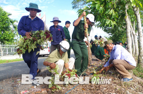Người cao tuổi tham gia xây dựng tuyến đường nông thôn sáng - xanh - sạch - đẹp. Ảnh: N.Q