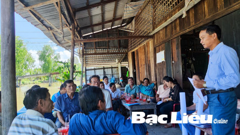 Đồng chí Danh Sơn - Phó Chủ tịch Ủy ban MTTQ Việt Nam huyện Hồng Dân phát biểu tại cuộc họp với người dân xã Vĩnh Lộc A. Ảnh: N.Q