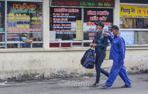 | Một số người dân còn chủ quan khi đeo khẩu trang không đúng quy định (ảnh chụp tại Bến xe tỉnh Cà Mau). |
