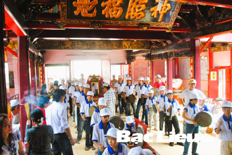 Lễ cúng tạ bình an vào tháng Chạp hằng năm tại Di tích quốc gia Phước Đức cổ miếu (khóm Trà Kha B, Phường 8, TP. Bạc Liêu). Ảnh: N.Q