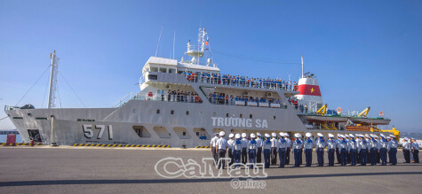 Lễ tiễn Đoàn công tác số 8 đi thăm chiến sĩ làm nhiệm vụ trên đảo Trường Sa và nhà giàn DK 1/16 tại Quân cảng Cam Ranh, tỉnh Khánh Hoà, tháng 4/2026. Ảnh: LÊ NGUYỄN