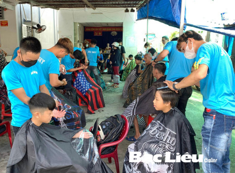 Một chuyến thiện nguyện cắt tóc miễn phí của Salon Âu Sky. Ảnh: H.L