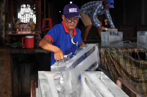 Anh Hải cần mẫn với công việc giao nước đá của mình.
