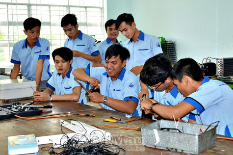 Học viên Trường Cao đẳng Việt - Hàn trong giờ thực hành. |
