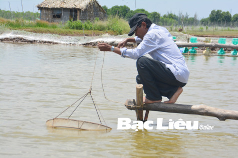 Một hộ người dân tộc Khmer ở huyện Hòa Bình phát triển mô hình nuôi tôm từ nguồn vốn vay ưu đãi.