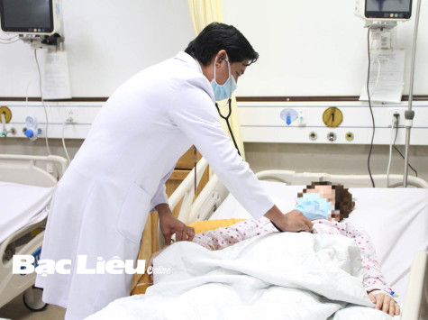 Bác sĩ thăm khám cho bệnh nhân bị vỡ gan do dùng đai nịt bụng sai cách. Ảnh: T.L