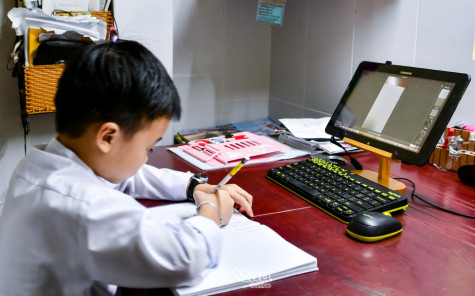 Việc học trực tuyến đối với lớp 1, 2 vào giờ hành chính gây khó khăn cho phụ huynh. |