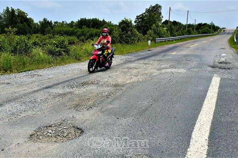 Trong đó xuống cấp nghiêm trọng nhất là đoạn gần 10 km từ cầu Năm Căn về đến thị trấn Rạch Gốc, huyện Ngọc Hiển. Suốt chiều dài của đoạn đường này mặt đường bong tróc, nham nhở, xuất hiện nhiều ổ gà, ổ voi. Nhiều đoạn, người dân phải dùng các vật dụng cảnh báo những hố sâu để người tham gia giao thông tránh tai nạn đáng tiếc.