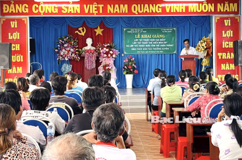 Khai giảng lớp dạy nghề do Trường cao đẳng Kinh tế - Kỹ thuật Bạc Liêu phối hợp với UBND xã Vĩnh Trạch (TP. Bạc Liêu) tổ chức. Ảnh: N.Q