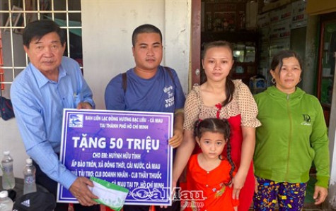 Để tiếp sức gia đình anh Tình có kế mưu sinh lâu dài, bền vững, CLB Doanh nhân và CLB Thầy thuốc đồng hương Bạc Liêu - Cà Mau tại TP Hồ Chí Minh đã trao tặng 50 triệu đồng; 1 mạnh thường quân tặng trực tiếp 5 triệu đồng và Công ty Thiên Ân (TP Hồ Chí Minh) tặng 1 suất quà.