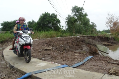| Nhiều tuyến đường ở Đầm Dơi hư hỏng, sạt lở nghiêm trọng cần nguồn vốn đầu tư rất lớn. |