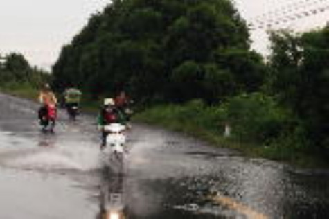 | Đường Hồ Chí Minh đoạn ấp ông Như, xã Tân Ân Tây, huyện Ngọc Hiển bị ngập do triều cường. |
