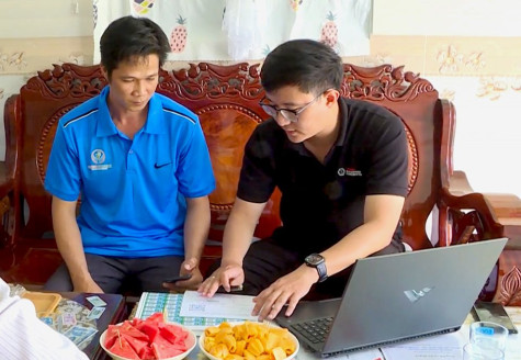 Đại diện công ty CP Vietnam Blockchain đang tập huấn anh Đỗ Quốc Khánh - Giám đốc Công ty TNHH Sản xuất, thương mại Hùng Khánh.