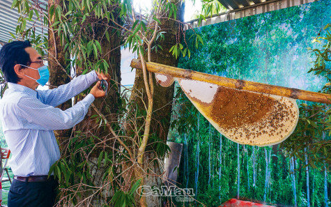 | Sự kiện Hương rừng U Minh năm nay sẽ tổ chức xác lập kỷ lục “Tổ ong lớn nhất Việt Nam” của nghề gác kèo ong rừng U Minh Hạ. (Ảnh chụp du khách tham quan tổ ong được trưng bày tại sự kiện Hương rừng U Minh năm 2021). |