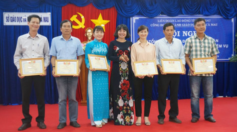 Tại hội nghị tổng kết hoạt động công đoàn năm học 2018 – 2019 của ngành giáo dục tỉnh Cà Mau diễn ra vào sáng ngày 20/8, đã có 8 tập thể và 18 cá nhân được trao giải cuộc thi viết “Cán bộ, công chức, viên chức và NLĐ làm theo Bác” năm 2019 và nhiều tập thể, cá nhân nhận cờ thi đua, bằng khen của LĐLĐ tỉnh, giấy khen của Công đoàn ngành về thành tích xuất sắc trong các hoạt động công đoàn năm học qua./.