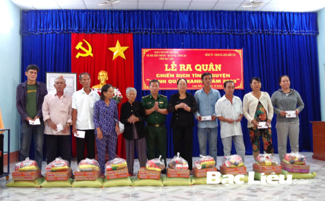 Tặng quà gia đình chính sách trong chiến dịch Hành quân xanh tại xã Long Điền Tây (huyện Đông Hải). Ảnh: Đ.H