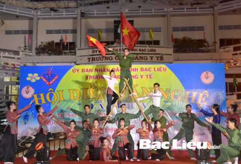 Tiết mục văn nghệ chào mừng kỷ niệm Ngày truyền thống Học sinh - sinh viên và Hội Sinh viên Việt Nam của Trường cao đẳng Y tế Bạc Liêu. Ảnh minh họa: H.L