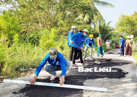 Tuổi trẻ huyện Vĩnh Lợi dặm vá lộ giao thông ở xã Vĩnh Hưng A.