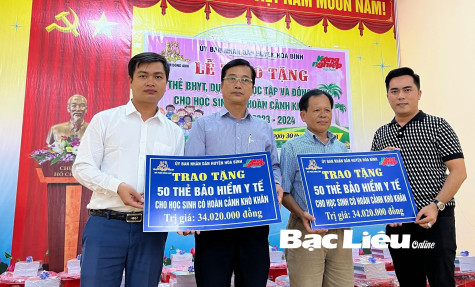 Ngày 30/8, Văn phòng Báo Nông nghiệp Việt Nam tại ĐBSCL phối hợp với UBND huyện Hòa Bình tổ chức lễ trao tặng thẻ bảo hiểm y tế (BHYT) và các dung cụ học tập cho học sinh có hoàn cảnh khó khăn xã Vĩnh Mỹ A (huyện Hòa Bình).